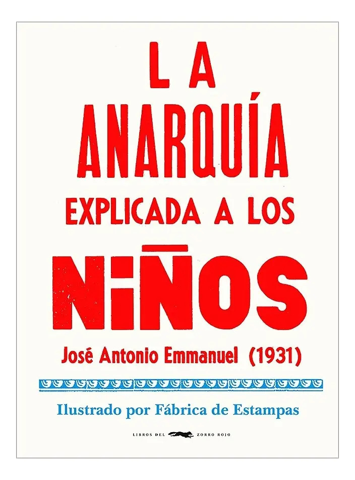 El libro repasa el significado de la anarquía, los caminos para llegar a ella y una serie de valores ácratas -más vigentes que nunca-. Editorial Los Perros Románticos publica por segunda vez la obra «La Anarquía explicada a los niños» (1931-Barcelona, España) de José Antonio Emmanuel. En esta edición, el texto va acompañado por las ilustraciones de Súper Muerta (Tania Ramírez, Chile). Nuevas formas de pensar el mundo a través de palabras e imágenes. Ideal para niños, niñas, adultos y para todos.